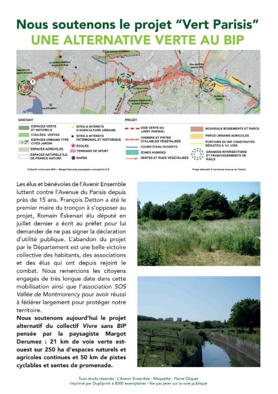 Nous sommes à l’origine des motions contre l’Avenue du Parisis et les nuisances aériennes ainsi que de propositions d’aménagement et d’ouverture au public des espaces verts délaissés du BIP et du parc de Dino, idées reprises, mais que partiellement, par le maire.