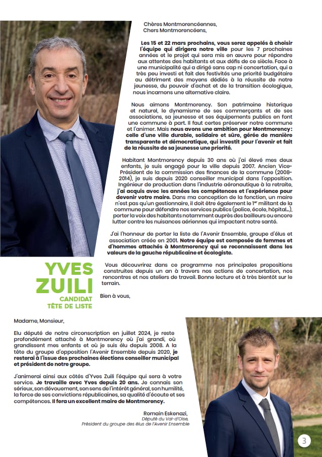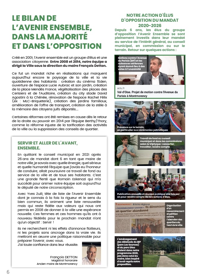Après près d’un an de travail, en nous appuyant sur notre expérience d’élus, nos rencontres avec vous, d’échanges et de concertations, et nos ateliers de réflexion, nous vous présentons notre programme .